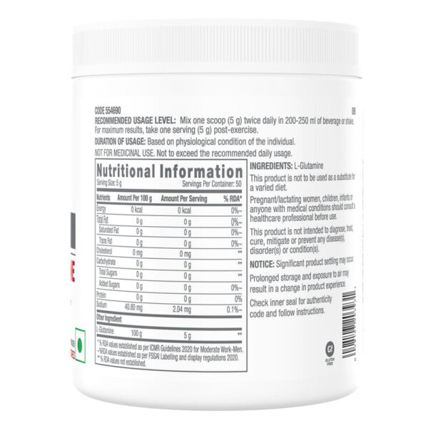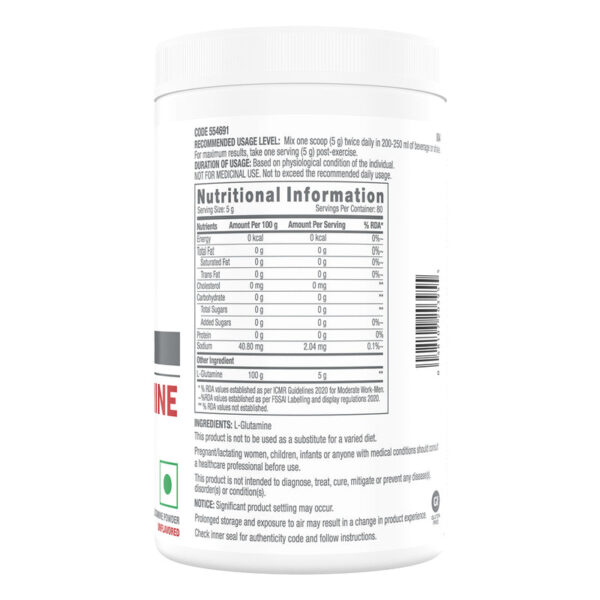 • High Concentration: 5000 mg of L-Glutamine per serving.