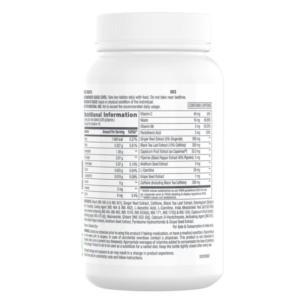 • Capsicum Oleoresin (33.3 mg): Extracted from chili peppers, known for its thermogenic effects that aid in calorie burning.