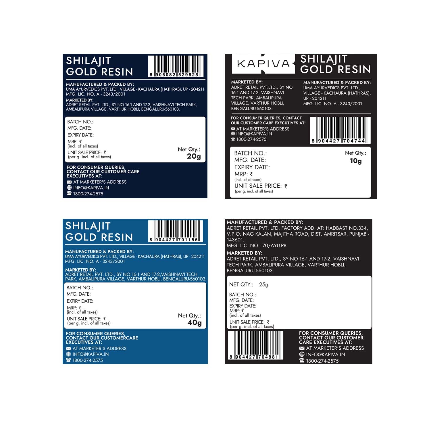 Kapiva Him Foods Shilajit Gold Resin is a potent Ayurvedic formulation combining Himalayan Shilajit with Swarna Bhasma (24K gold), Nagori Ashwagandha, Black Musli, Gokshura, Haldi, and Coffee Arabica. This blend is designed to enhance stamina, support muscle recovery, and improve overall vitality.