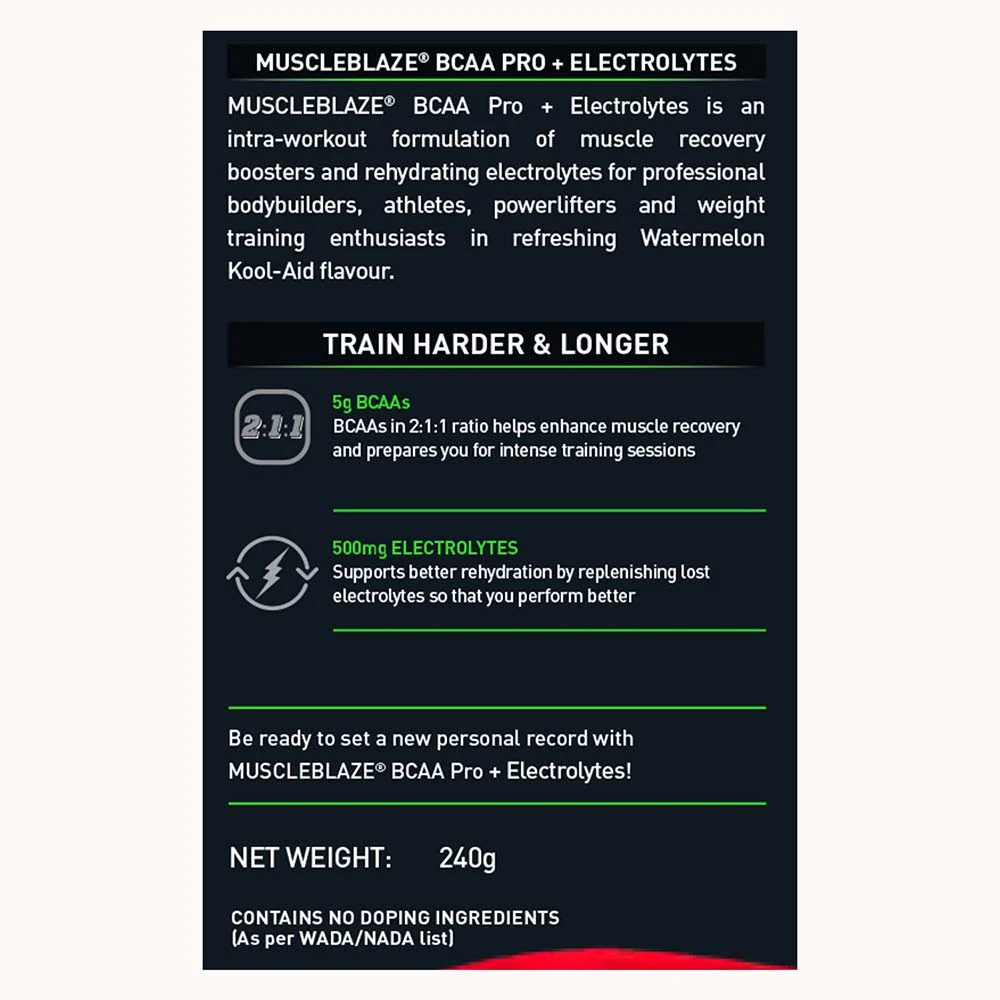 MuscleBlaze BCAA Pro is a powerful intra-workout supplement designed to enhance endurance, accelerate muscle recovery, and maintain hydration during intense training sessions.