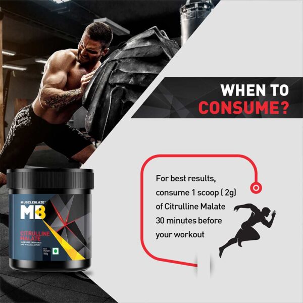 - Serving Size: Mix 1 level scoop (2g) of MuscleBlaze Citrulline Malate with 200 ml of water or your preferred beverage.