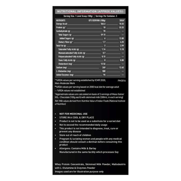 MuscleBlaze Mass Gainer XXL is a high-calorie supplement designed for individuals aiming to build muscle mass effectively. With a balanced 3:1 ratio of carbohydrates to proteins, it ensures sustained energy release and supports muscle recovery and growth.