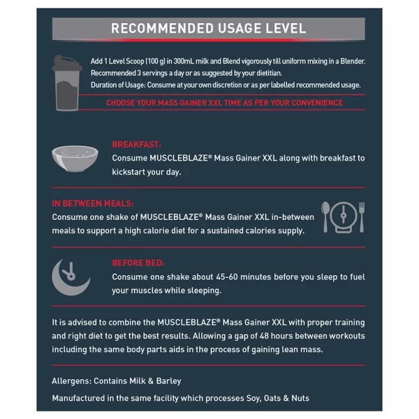 MuscleBlaze Mass Gainer XXL is an effective solution for those seeking to increase muscle mass and strength, providing essential nutrients and energy required for intense training sessions.
