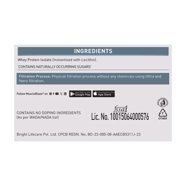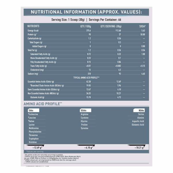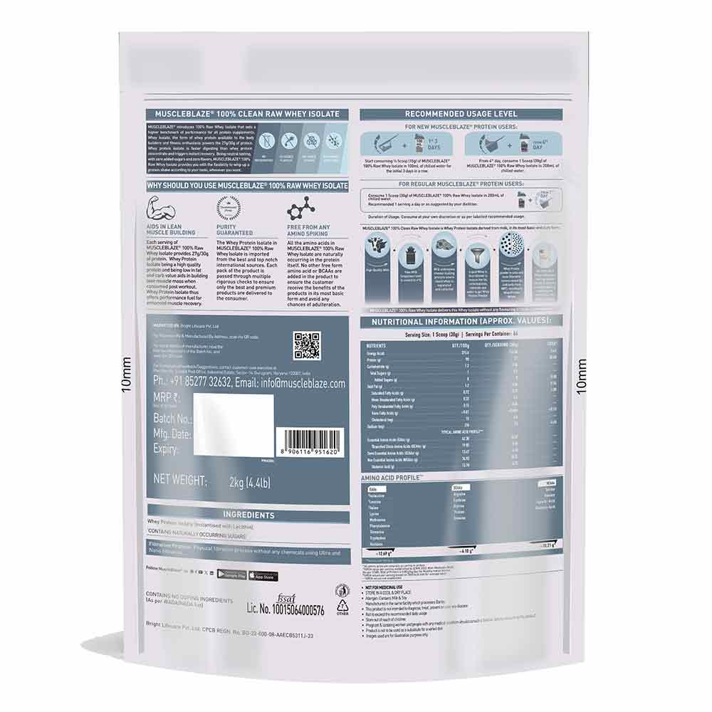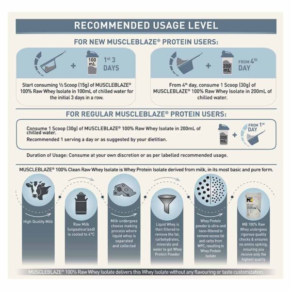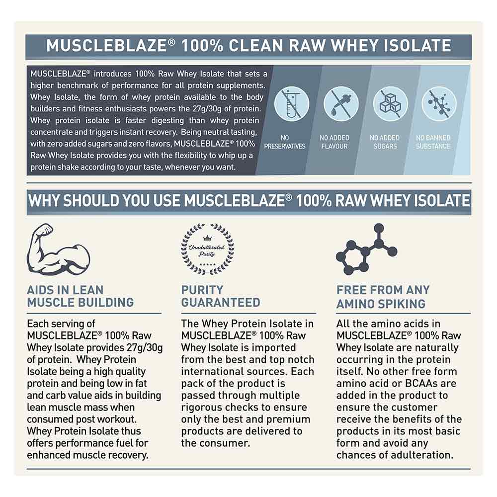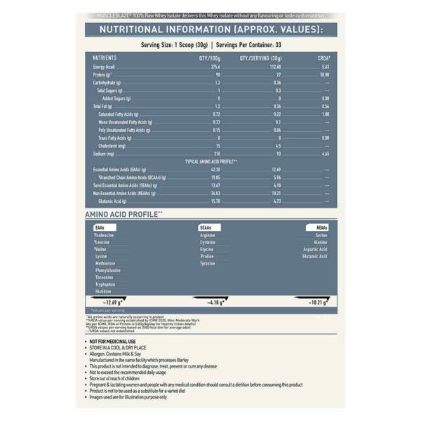 MuscleBlaze Raw Whey Isolate is a premium protein supplement designed for fitness enthusiasts seeking pure and effective nutrition. Each 30 g serving provides: