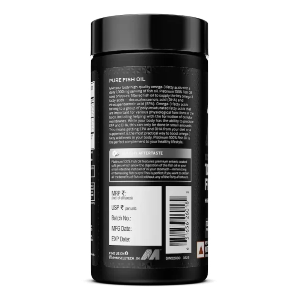 MuscleTech Platinum 100% Omega Fish Oil is an ultra-pure, filtered fish oil supplement delivering essential omega-3 fatty acids—EPA and DHA. Designed to support overall health, it aids in heart, brain, joint, and eye function.