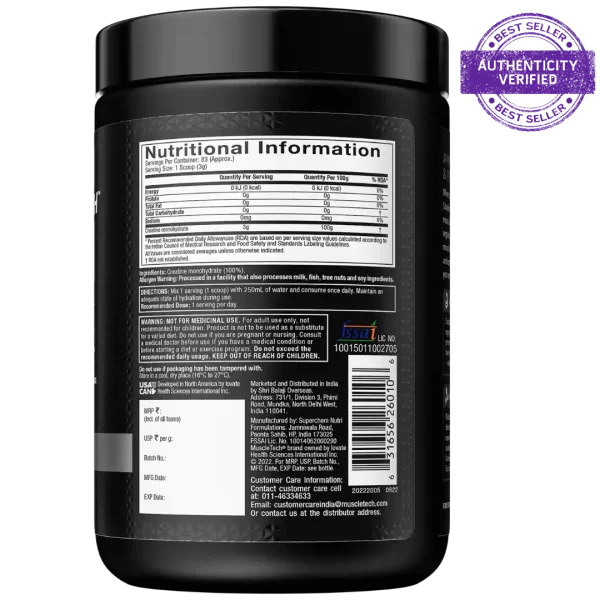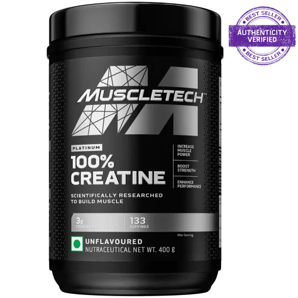 MuscleTech Platinum 100% Creatine is a high-quality, micronized creatine monohydrate supplement designed to enhance strength, power, and performance. Each serving delivers 3g of pure creatine, supporting muscle growth and recovery.