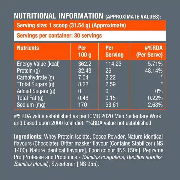 - Whey Protein Blend: 24g (Isolate + Concentrate)